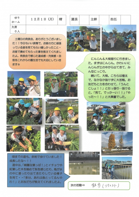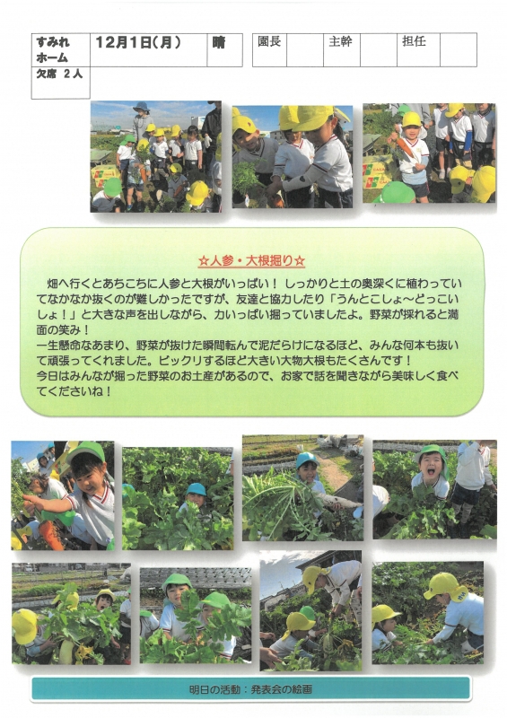 園の一日掲示板 2025年12月01日のクラスの様子 ※画像クリックで拡大します。 ひよこぐみ 準備中 りすぐみ 準備中 うさぎぐみ 準備中 ゆりホーム さくらホーム すみれホーム ぞう 準備中 2025年度 4月 2025/04/01 2025/04/02 2025/04/03 2025/04/04 2025/04/07 2025/04/08 2025/04/09 2025/04/10 2025/04/11 2025/04/14 2025/04/15 2025/04/16 2025/04/17 2025/04/18 2025/04/21 2025/04/22 2025/04/23 2025/04/24 2025/04/25 2025/04/28 2025/04/30 5月 2025/05/01 2025/05/02 2025/05/07 2025/05/08 2025/05/09 2025/05/12 2025/05/13 2025/05/14 2025/05/15 2025/05/16 2025/05/19 2025/05/20 2025/05/21 2025/05/22 2025/05/23 2025/05/26 2025/05/27 2025/05/28 2025/05/29 2025/05/30 6月 2025/06/02 2025/06/03 2025/06/04 2025/06/05 2025/06/06 2025/06/09 2025/06/10 2025/06/11 2025/06/12 2025/06/13 2025/06/16 2025/06/17 2025/06/18 2025/06/19 2025/06/20 2025/06/23 2025/06/24 2025/06/25 2025/06/26 2025/06/27 2025/06/30 7月 2025/07/01 2025/07/02 2025/07/03 2025/07/04 2025/07/07 2025/07/08 2025/07/09 2025/07/10 2025/07/11 2025/07/14 2025/07/15 2025/07/16 2025/07/17 2025/07/18 2025/07/22 2025/07/23 2025/07/24 2025/07/25 2025/07/28 2025/07/29 2025/07/30 2025/07/31 8月 2025/08/01 2025/08/04 2025/08/05 2025/08/06 2025/08/07 2025/08/08 2025/08/12 2025/08/18 2025/08/19 2025/08/20 2025/08/21 2025/08/22 2025/08/25 2025/08/26 2025/08/27 2025/08/28 2025/08/29 9月 2025/09/01 2025/09/02 2025/09/03 2025/09/04 2025/09/05 2025/09/08 2025/09/09 2025/09/10 2025/09/11 2025/09/12 2025/09/16 2025/09/17 2025/09/18 2025/09/19 2025/09/22 2025/09/24 2025/09/25 2025/09/26 2025/09/29 2025/09/30 10月 2025/10/01 2025/10/02 2025/10/03 2025/10/06 2025/10/07 2025/10/08 2025/10/09 2025/10/10 2025/10/14 2025/10/15 2025/10/16 2025/10/17 2025/10/20 2025/10/21 2025/10/22 2025/10/23 2025/10/24 2025/10/27 2025/10/28 2025/10/29 2025/10/30 2025/10/31 11月 2025/11/04 2025/11/05 2025/11/06 2025/11/07 2025/11/10 2025/11/11 2025/11/12 2025/11/13 2025/11/14 2025/11/17 2025/11/18 2025/11/19 2025/11/20 2025/11/21 2025/11/25 2025/11/26 2025/11/27 2025/11/28 12月 2025/12/01 1月 2月 3月