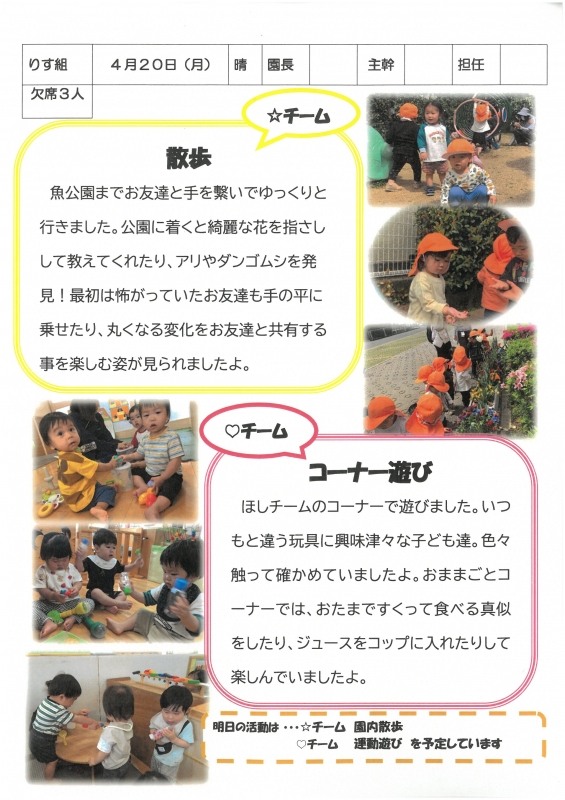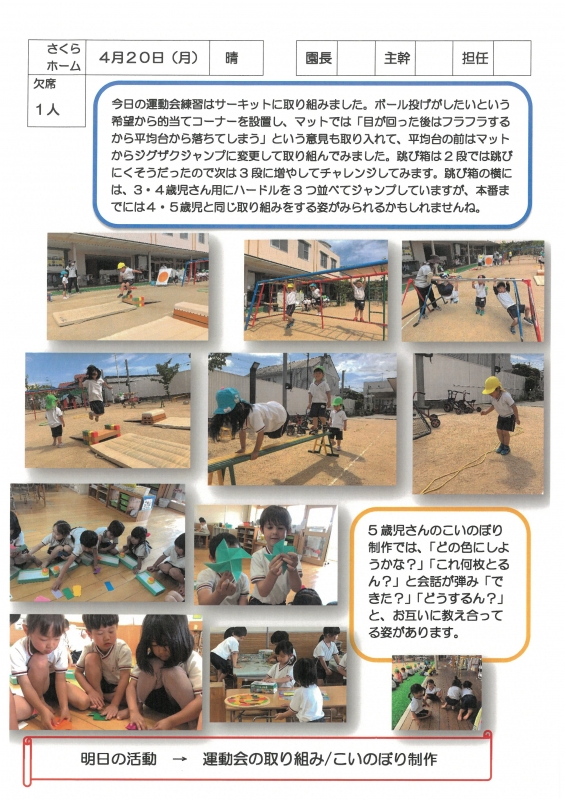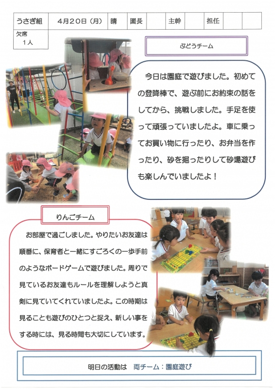 園の一日掲示板